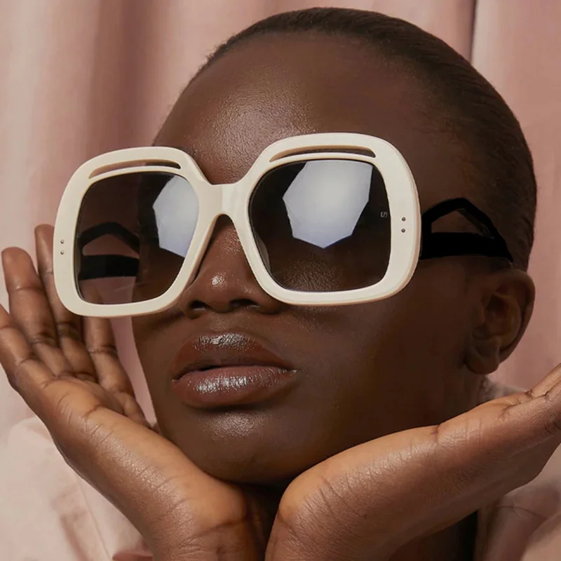 Unique Cream Oversized Sunglasses Women Vintage Brand Designer Cut Out Big Frame Square Sun Glasses 70s Playful Eyewear